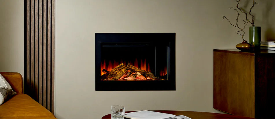 The British Fires Ashlett is a stylish and adaptable insert electric fire, designed to suit one-, two-, or three-sided installations. It features ultra-realistic British Oak logs, optional downlighting, and an upgraded sleek steel frame for a refined finish.