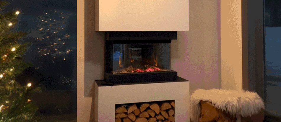 Cornered is the option to have only one side covered up and installed into a corner section of a room where this style would suit. This can be done with either the left or right side of the fire to be covered — creating a more dramatic room composition.