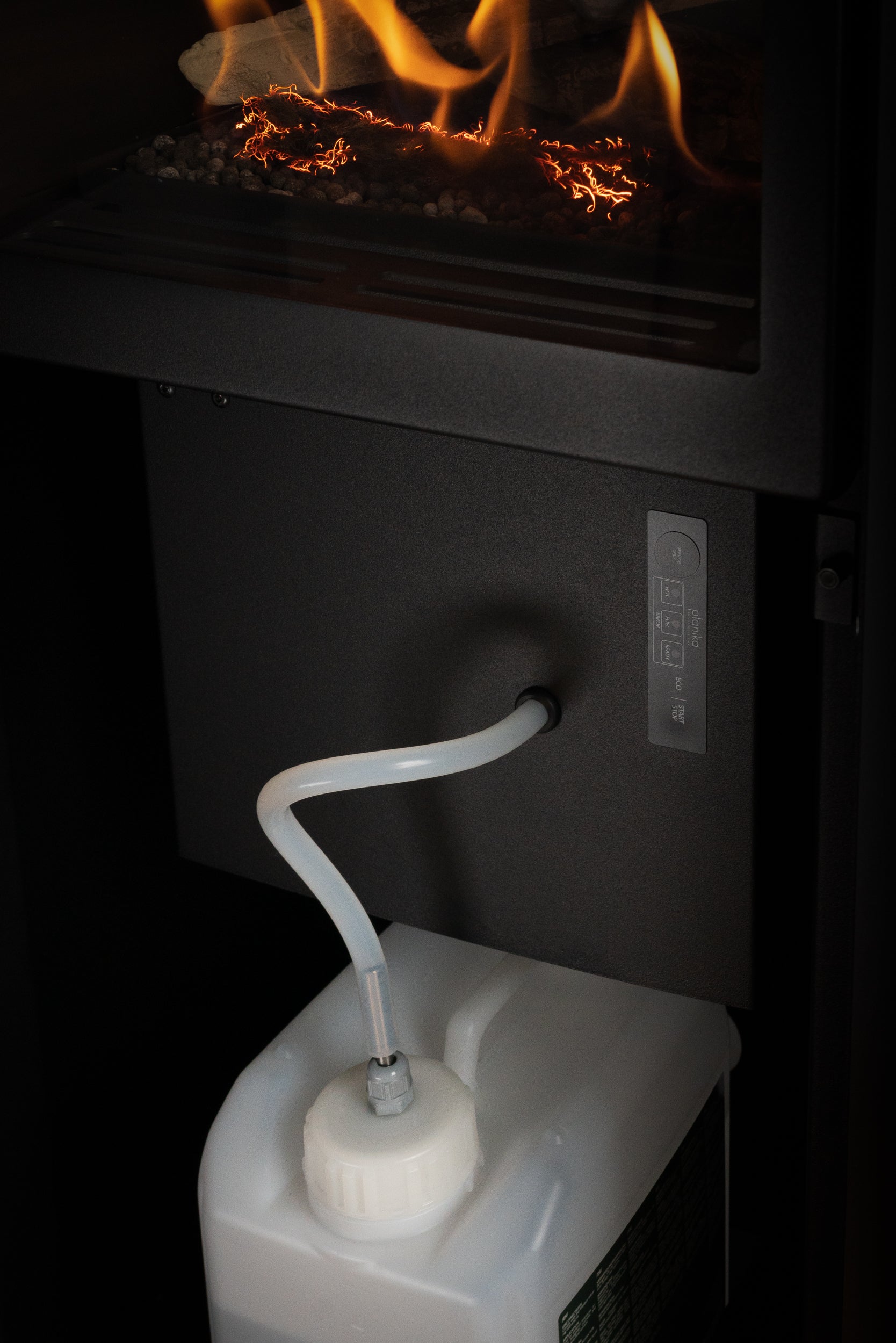 For your convenience, Scandi fireplace is equipped with automatic fuel pump that communicates with the device and supplies it with the necessary amount of the fuel. No longer will you find replacing the fuel tank difficult. Once it’s empty you only have to insert a new bottle.